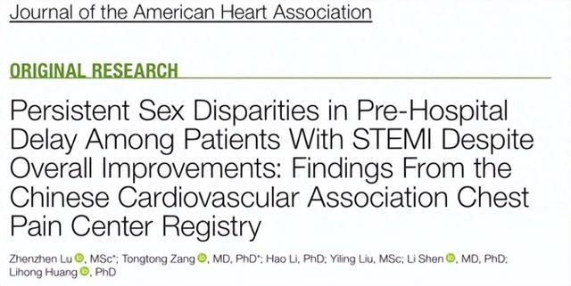 ①Lu Z, Zang T, Li H, et al. Persistent Sex Disparities in Pre-Hospital Delay Among Patients With STEMI Despite Overall Improvements: Findings From the Chinese Cardiovascular Association Chest Pain Center Registry. J Am Heart Assoc. 2026 Mar 3;15(5):e044847